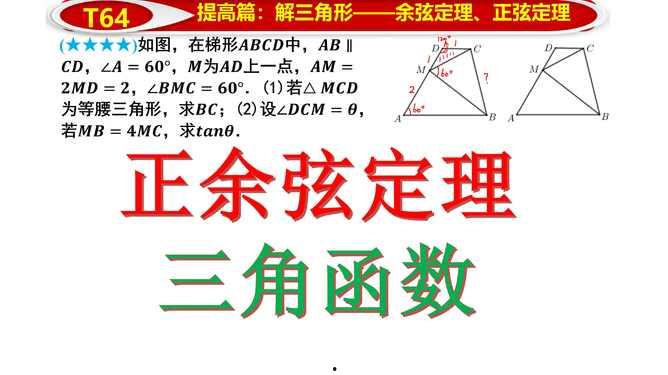 这类视频主要针对有一定数学基础的学习者,讲解解三角形的高级技巧和方法。如构造辅助线、运用对称性等。