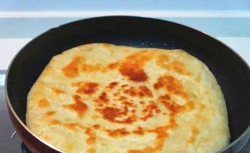 6. 烙饼:在平底锅中倒入少量植物油,将擀好的饼放入锅中,中小火烙至两面金黄,饼体鼓起即可。